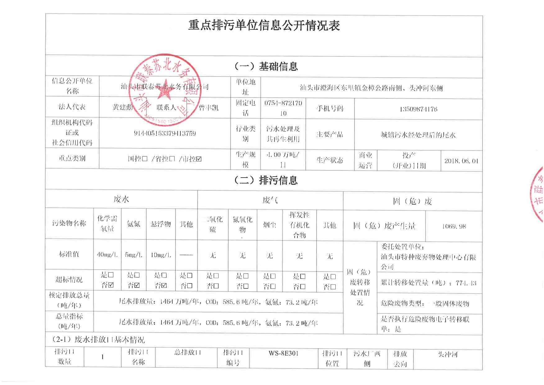 重點排污單位信息公開情況表