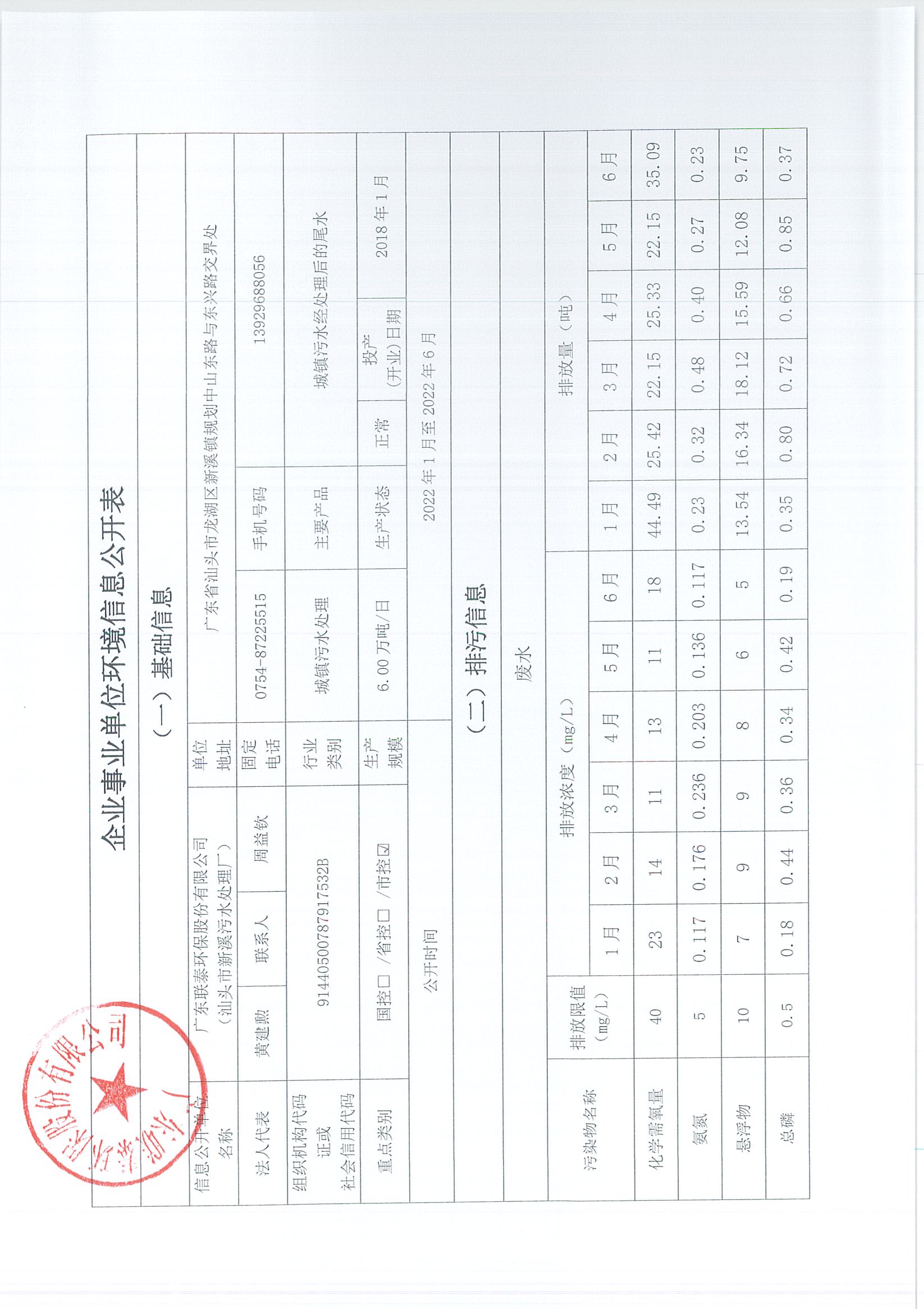 廣東聯泰環保股份有限公司(新溪污水處理廠)