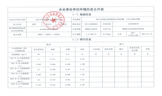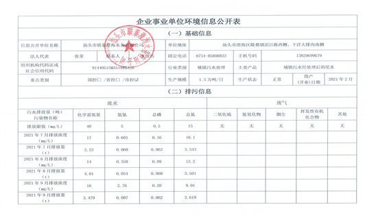 信息公開單位名稱: 汕頭市聯泰澄海水務有限公司