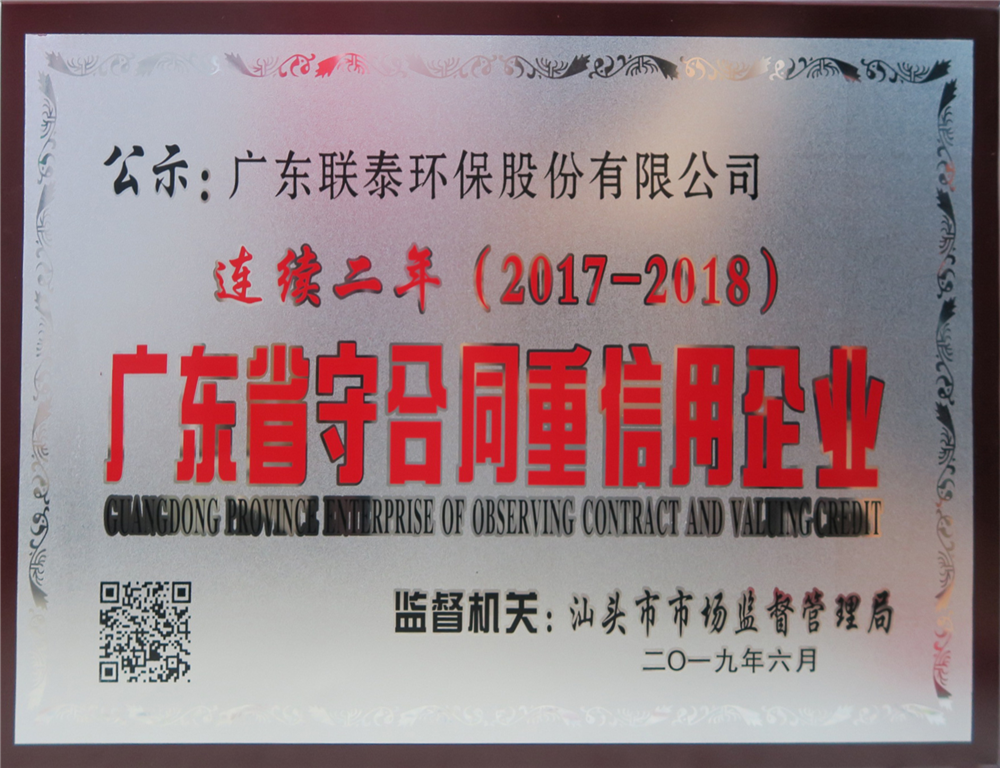 2017-2018年廣東省守合同重信用企業